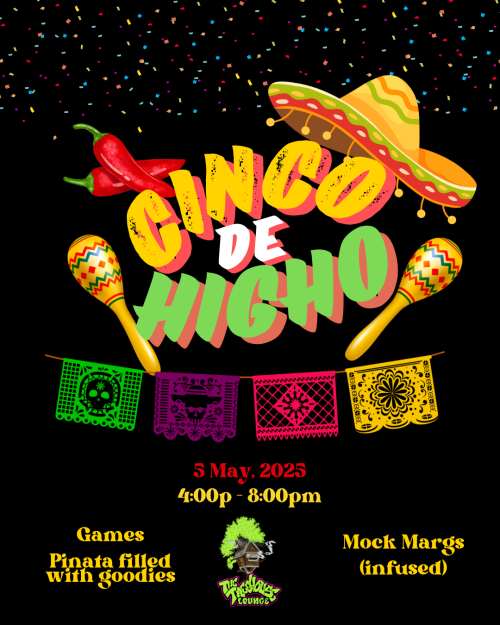 Celebrate Cinco De Higho at The Treehouse Lounge with games like Pass the Puff, a pinata filled with 4 Twenty goodies, and infused mock margaritas and other fun drinks!Don Tono Food Truck on site!!!$15 for the event and daily membership passFree for annual membersByob, bring your own bud. NFS21+