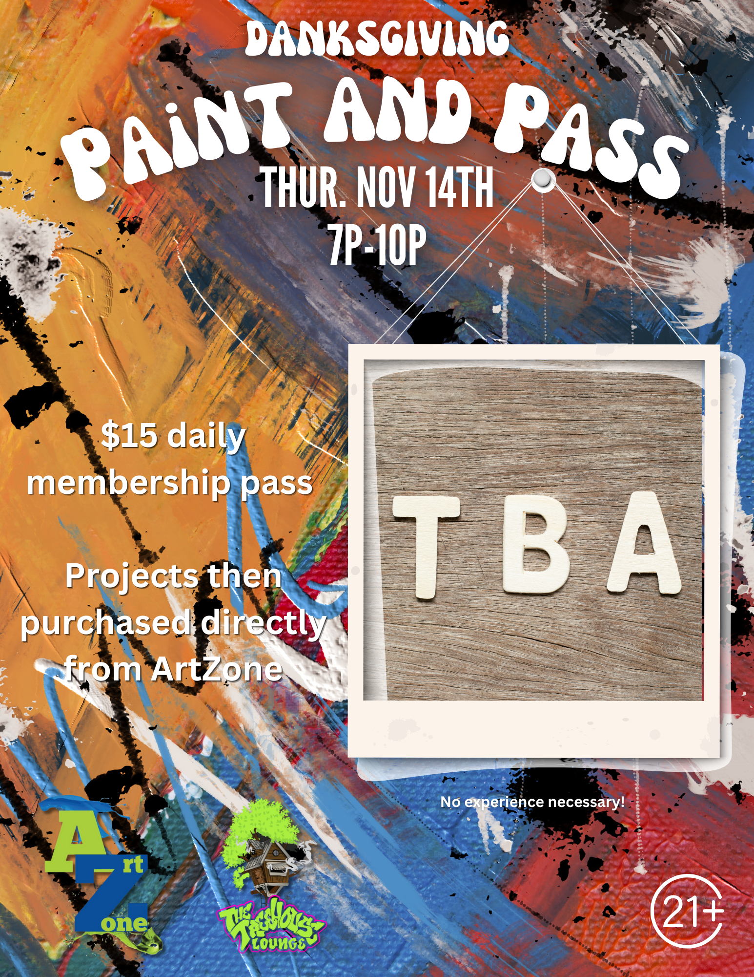 This month’s Paint & Pass is Danksgiving themed!!! *The actual project will be announced soon.* $15 for the daily membership pass and then you decide which project you want to do! ArtZone usually brings a few choices of projects to choose! Projects start at $15 and are purchased separately and directly from ArtZone Open d@b […]