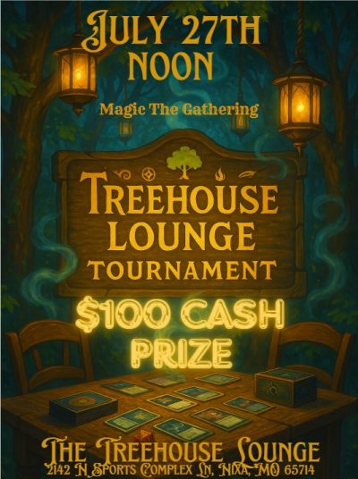 Event by HyperionSun TCG and The Treehouse Lounge  HyperionSun TCG & The Treehouse Lounge Monthly Magic: The Gathering TournamentWhere Strategy Meets Serenity Unleash your deck. Embrace the vibe. Modified Bracket 2: 2 non land tutor max Location:Treehouse Lounge Springfield’s premier legal cannabis consumption lounge (21+ only | Valid ID required) Date & Time:Saturday, July 27th Check-in: Noon | First Round: 1:00 PM Format:Commander– Modified […]