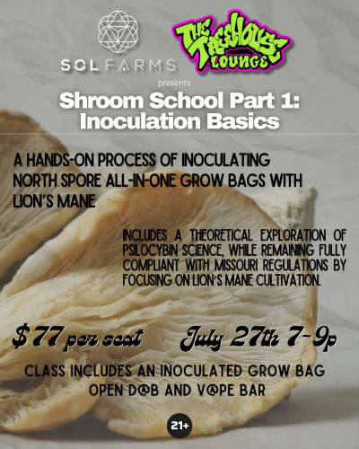 PURCHASE YOUR TIX HERE: Shroom School Part 1: Inoculation Basics with SoL Farms 𝑬𝒗𝒆𝒏𝒕 𝑶𝒗𝒆𝒓𝒗𝒊𝒆𝒘 Shroom School Part 1: Inoculation Basics, $77 a seat, presented by SoL Farms provides a professional introduction to mushroom cultivation. This two-hour workshop focuses on the precise process of inoculating North Spore all-in-one grow bags with Lion’s Mane. 𝑪𝒍𝒂𝒔𝒔 𝑫𝒆𝒔𝒄𝒓𝒊𝒑𝒕𝒊𝒐𝒏 […]